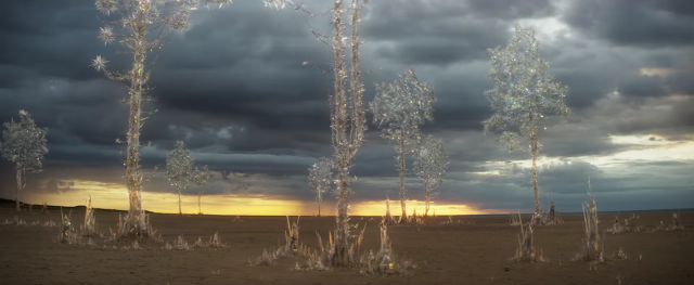 Following the attack, Josie gives up, turning into a human garden sculpture, echoing the Greek heroines of old; Ventress continues to the lighthouse, and Lena follows. The landscape is suitably weird, almost picturesque—flat but ornamental: crystal trees decorate the coastal surroundings, as if placed there by the unseen hand of a great and powerful Artist. I found myself thinking of the Southern Oracle, from Wolfgang Petersen’s The Neverending Story (1984): everything is bare, with a single, towering artifact waiting for the sole, questing hero.