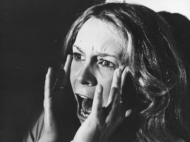 On this note, the trailer immediately profits from Carpenter's signature work. The themes are instantly recognizable, and forty years later still make one's hairs stand on end (the footage has also been expertly cut to play in time with the music). That being said, some of the sound effects from the original are recycled, too, including the sounds used for Sam Loomis' snub-nose revolver (complete with a black screen, flashing white to simulate the muzzle flashes). It makes me curious: Will Carpenter take any liberties with the material? Will we get the same classic audio cues that we did, in the original ("Turn around, Jamie!")? Time will tell, but I'm always excited to hear the Master at work. Following early screenings of the original movie, Carpenter's son evidently told him that other audience members didn't close their eyes, they covered their ears. I hope to experience that, myself, come Halloween night.