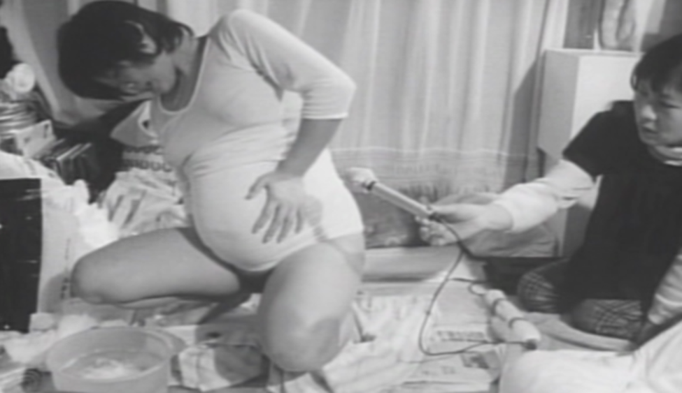 Indeed, she smiles and laughs all the way through, chirping happily into a microphone being held by another woman, who smiles politely and listens to everything Miyuki says as she gives a blow-by-blow commentary on and during her own pregnancy. I was hooked, all the more so because this isn’t a visual effect, but a real, undeniable event. As Kambei Shimada in Seven Samurai (1954) said, of the speared woman carrying her baby to safety from the burning mill: “What willpower!” Concerning my reaction towards Miyuki, the incredulity was no less inspired.