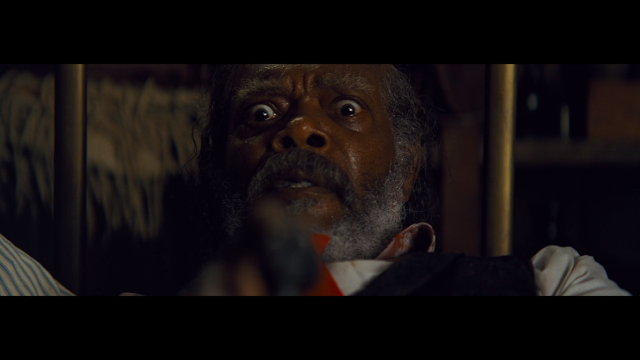 The chapter-in-question is the one Tarantino plays after the Major is shot: Chapter Five. On one hand, this kind of overblown exposition shouldn't even be required, provided Tarantino was actually interested in following some basic tenants of restraint and reveal (at certain moments, he refuses to tip his hand at all. Other times, he tips it so far a part of me wishes he hadn't). Conversely I relished the gratuitous violence on display during the butchery of the Minnie household, even if the movie wasn't exactly building up to it. It explodes, but hardly with the same surge of power seen during the basement massacre, in Inglorious Basterds (2009). Instead, by the time we're shown it, it's effectively an end note—one that contributes little if anything the climax that's currently unfolding on-screen, with the Major and Chris Mannix (the unlikely "Johnny Reb" hero) squaring off against the dwindling infiltrators.