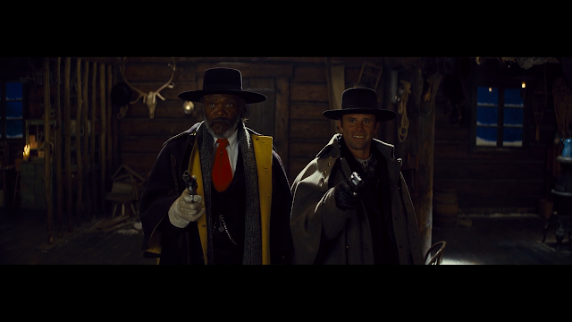 True, the hanging sentence at the end effectively solidifies each as robber and cop. Apart from that, little separates them. I wouldn't even have cared except for the flagrant abuse, by Tarantino—of the fabulous music and the movie's run time, to make a case that ultimately falls flat on its face. We're not here to like these characters; it's not the suspense or good versus evil. It's to see the blood splatter in antiquated cinematic formats, just because the director can. As far as that goes, I care as much about The Hateful Eight being shot in Ultra Panavision 70mm, as I did Forbidden Planet (1956) being shot in Eastmancolor and CinemaScope. Not one bit. At least in Inglorious Basterds, the photographic nerdiness fuelled the plot in a clever way with the nitrate canisters. In The Hateful Eight, Tarantino just plasters "filmed in Ultra Panavision 70mm" on his posters and credits sequence like it's supposed to mean something to anyone other than himself, Wes Anderson, or photography majors. It's annoyingly self-indulgent.
