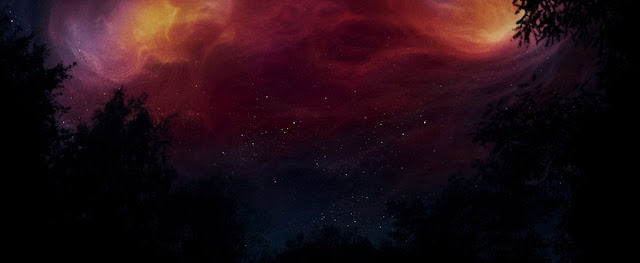 Panos Cosmatos' Mandy (2018) borrows from many films. It opens with a scrolling forest, but the camera soon nods upward, at a colorful planetscape. This reverses the opening shot in Star Wars (1977), when the camera falls from the sky to rest on Tatooine and her moons. Murky and rich, the music sets the tone. It's a tale of good versus evil, of a pastoral scene broken by violence and repaid in kind.