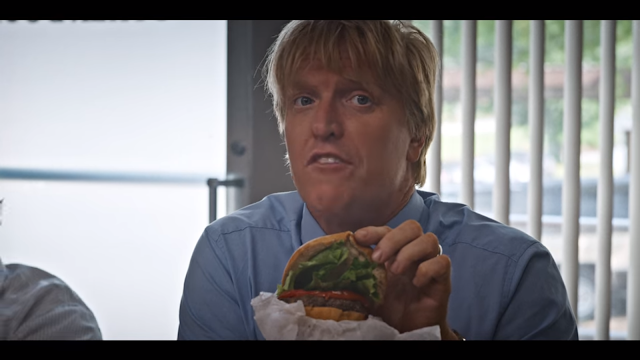 Cut to downtown. Most of the stores (including the RadioShack Bob worked at) are going out of business because of the mall. Joyce is putting up bargain signs when Hopper strolls in, pissed-off. He's a bit less uptight, this time around, more awkward ("A heart-to-heart? What is that?"); Joyce is more in control. I like it. Unlike Joyce, Nancy's a nervous wreak. Frazzled, she walks into work with sandwiches for everyone. The men in the room talk shop ("How about a piece on Iran?"). It's a bit of a time capsule, with plenty of cheap suits, balding pates and cigarette smoke. One of them is Jake Busy (that guy from Starship Troopers [1997] who gets his hand tacked to a wall). His bad tan and sandy hair are comparable to Trump's.