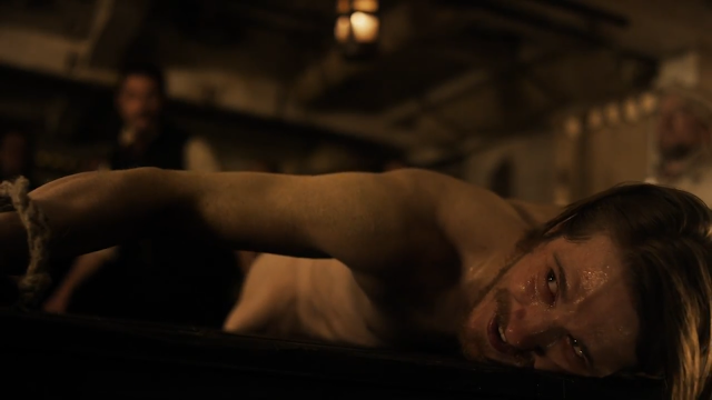 However, there comes a point where Tuunbaq is shown in broad daylight. The last of the survivors battle the beast, which crushes them, ripping everyone apart. You might say to yourself, "They're showing too much!" But there's a point, here, to the tipping hand: Mr. Hickey, the rogue mutineer, is convinced no man is his equal ("You must be an exceedingly lonely man, Mr. Hickey." / "Not for much longer."). A treacherous, cocky bastard, Mr. Hickey sees the beast as divine, proof to the Irish outcast that his English lords are full of it.