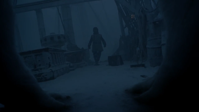 For a monster, Tuunbaq isn't bad. While its digital effects look cartoonish in ways that might disappoint some, much of it is framed in such a way to conceal the visual weaknesses. Tuunbaq attacks from off-screen, pulling men into the hoary night. It yanks them through canvas tents and chomps off their heads; it maims them and thrusts them into the ice, alive and screaming. Brutal. And when the beast is shown, it's concealed by the mist and the snow. It's dressed by blind corners and reverse points of view. You catch glimpses of it, but seldom the whole thing. And when you do, it's only for an instant.