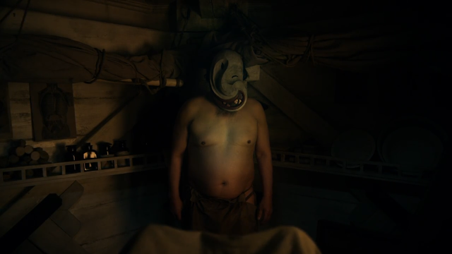 For example, when the ship's doctor goes nuts and burns down the carnival tent, it's under the suspicion that someone's going to snap. Except I thought it'd be Mr. Hickey who did the deed, and for revenge. Nope, it's the doc, who burns himself alive to boot. Then there's the shaman during the sick boy's final moments in episode one. When I first saw him he seemed dangerous, with that freaky-looking mask for a head. But it turns out he's warding off the monster. We're told about it in the first five minutes: Tuunbaq—such an awesome-sounding name (the bear in The Edge had no name, but its actor animal was called Bart).