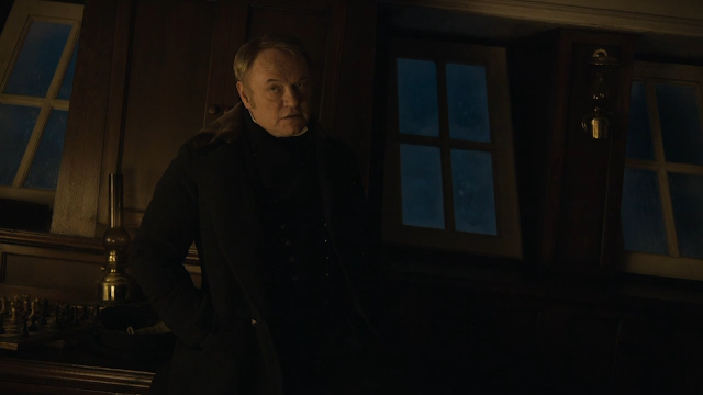 This madness boils over during a carnival thrown for the men. Francis is coping with his alcoholism, so James takes command. As captain, he decides to give the men their bread and circus before Francis evacuates the ships (another poorly-kept secret). James plays a Roman general; the men around him drunkenly feast and debauch on par with luscious Antiquity. And like the civilization that came before, the sailors are wasted by lead, the carnival tent burning to the ground like Rome did for Nero. A lot of men die in the flames, including both ships' doctors (one of whom started the blaze to begin with). Only Mr. Goodsir, the Terror's surgeon, survives.