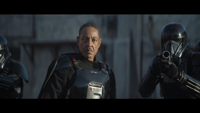 Begin episode eight. The whole episode is great, but I'll try and list some of the best bits: the storm trooper scene before IG-11; listening to Moff Gideon explain the benefits of the high-powered laser while also reminding the heroes that he has dirt on all of them; the way the death troopers handle themselves against Blondie and the rest; Gideon besting Blondie despite Blondie having the Gatling gun (usually a trump-card in Westerns); the IG-11's Terminator argument ("I'm not sad." "Yes you are."); the tie-fighter dogfight and subsequent Rocketeer (1991) bit. It's the bit of Star Wars I've seen since before the original trilogy "remaster."