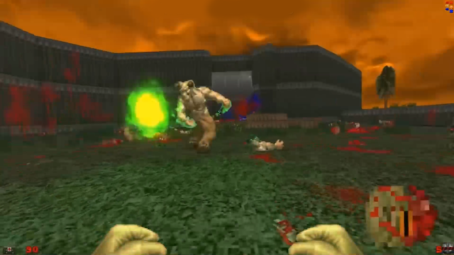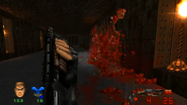 One problem I have with with B&B is their current treatment of projectiles, gore and explosions. The monsters and levels are largely what they were in 1993; they are still pixelated, with the same color palettes and artistic approach, albeit with added animation frames. However, the projectiles, gore and explosions they produce have much more detail than would've been possible twenty-seven years ago. As a result, the ensuing carnage resembles something closer to Doom 64 (1997) or Disruptor (1996). It's a bit uneven.