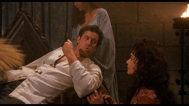 The narrative plays out like a Quixotic dream. I can't forgive it, though, because it never stops (see Puck's closing speech for A Midsummer Night's Dream, "If we spirits have offended..."). During the dream, the skeleton king is repulsively lecherous. But Raimi fails to even mildly condemn Ash's own manipulative behavior ("That's just what we call pillow-talk, baby!"). This is, in my opinion, the movie's greatest flaw. Yes, it pokes fun at the tired tropes of the mythical hero through a Beowulf-level performance. It also reinforces them in the present—by creating a privileged, sexist idiot for the audience to rally behind.