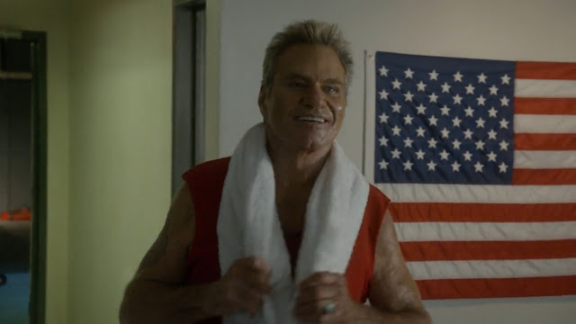 Kreese doesn't, but plays the game too. He's simply more vindictive, toying with his students because he can. Emotions can make even the most agile sluggish, and that's when Kreese strikes. It's not hard to make jilted people do stupid things. The fun lies in seeing the wise get fooled. What happens to Johnny (many times) is also happening with Kreese—a hypervigilant predator stuck in kill mode. Sooner or later, he'll play the Roman fool. Until then, he hams it up nicely.