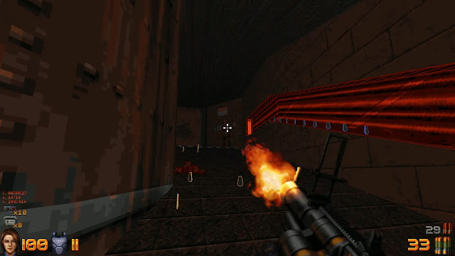 Ion Fury is a Build engine game developed by Voidpoint and produced by 3DRealms, the makers of the original Duke Nukem 3D. Like Duke Nukem, Ion Fury is 2.5D, with a 3D environment, 2D, sprites (re: enemies and items), and some 3D objects made of something called voxels. Cool. The game's heroine, Shelly "Bombshell" Harrison, must use a unique combination of strategy (re: exploration, platforming and resource management) and battle tactics to survive Ion Fury's maze-like levels.