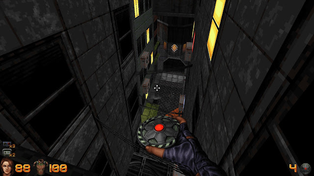 Secrets-wise, Ion Fury shies away from hand-holding, and that's why I like it. It feels like some I have to solve that actually requires effort. Meanwhile, its mandatory puzzles are far simpler and shorter than something like Half-life 1. Shelly controls like a dream, too, so there's not much to criticize in this department. However, this floating barrel puzzle in "Knee Deep" kind of sucks. It takes way too long to do, and requires interacting with barrels—voxels that can get stuck on the wall, and generally don't behave very well. This being said, that's the only frustrating puzzle I noticed across twenty-nine levels.