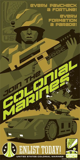 The Third Reich, or Kingdom, rejected modernity in favor of medieval pageantry* as an expression of state power. It's this incidental expression of fascist imagery which the poster most immediately conveys, and invites the fan to put up on their wall. And sadly most won't recognize it as such; they'll view it as nostalgic, rendering the fascist elements (and their real-world counterparts) invisible. I would argue that Matt did not invent this idea, or intentionally invoke it. Instead, he was responding to a trend that Metroid had borrowed, unsurprisingly, from Cameron's AliensWar is badass