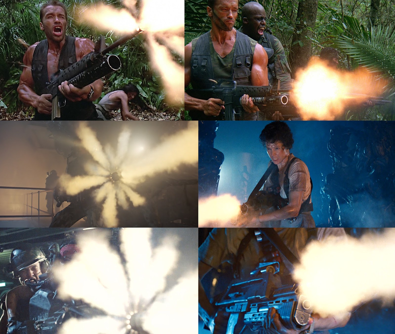 trauma—Ripley "pulls a Rambo" like Arnold and the boys do, becoming