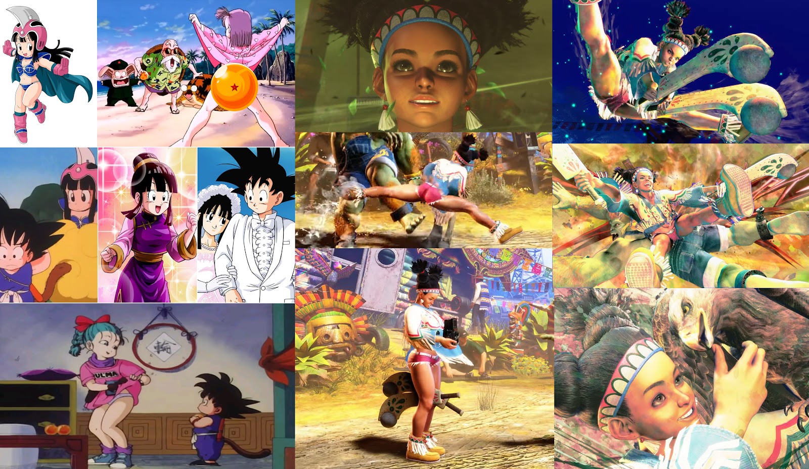 (exhibit 104b2: Chi Chi is worringly sexualized far more as a child than an adult; so is Bulma, who "mellows out" far more once she's an adult/married [canonically she's 16 in the above scene; as of 2023, re: the age of consent in Japan (an incredibly fascist country known for killing left-leaning politicians and denying genocide) is 13]. Meanwhile, Lily Hawk is handled with the same grace as Ma-Ti from Captain Planet—i.e., reduced to a cartoonish, cliché [and accent] and coming from the same tribe as every other Indigenous Person as T. Hawk and Juli did: the fictional Thunderfoot tribe. Seriously, it's like bad vaudeville, hauntologically codifying geopolitics by presenting the Global South [where Lily hails from] as canonically poor and run-down. In Lily's case, she's obviously been sexed up for the game's largely male, shonen-fed audience, too; there's not even a paratextual footnote reassuring us she's at least 18, the game's wiki page leaving her age out entirely. Gross.)