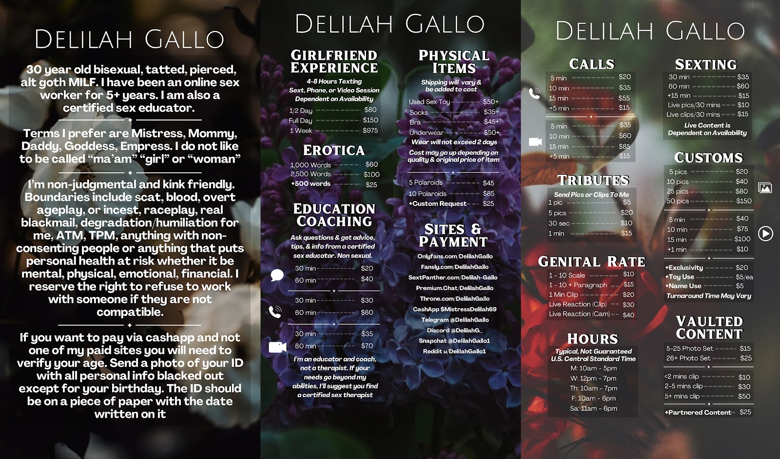 Delilah: Basically all of my info can be found at allmylinks.com/delilahgallo!