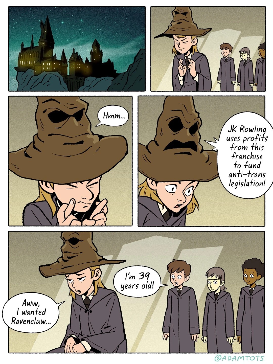 The same goes for our enemies (who often have more in common with us than the rulers they sell out to). Birdman, by comparison, is unable to even have a conversation at all—in short, and telling me as a recipient of genocide, in so many words, that "it's all in my head." They are a false friend—the very kind of fake who is silent in times of crisis that MLK warned about; re: "we will remember not the voices of our enemies but the silence of our friends." To that, Birdman is silent where it counts and punches down loudly to defend capital (which Rowling and Harry Potter are); i.e., it is easier for him to imagine my friends and I disappearing than it is Harry Potter. Talking to him is like pulling teeth, then, and I'm the dentist. All of that being said, I am not arguing for censorship of Harry Potter. Far from it. Instead, vis-à-vis Milton's "Areopagitica" (1644), I'm arguing for a boycott of the books as to not fund Rowling's genocide. Allegory and sedition concern private consumption of things not endorsed in public. So if these books, despite having mostly outstayed their welcome—and (for me, at least) largely being relegated to positions of academic critique (owing to their cultural significance)—have special significance to you, and you want to/can enjoy them in safely private without contributing to trans hate crimes (and state violence), knock yourselves the fuck out. In other words, don't be a Nazi (or a token Nazi, in Birdman's case) and we're golden, babes.