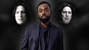 I digress. Making Snape the disgruntled and sexually awkward outsider with reactionary views black doesn't change that, on its own—meaning they'd have to pull a "Ship of Theseus" and fundamentally alter the character beyond what I suspect Rowling would appreciate (a witch who has her spoon in many-a-cauldron, regarding her precious franchise and its endless resurrections). It'd be easier to simply make a new character than to force blackness onto them; i.e., turncoats are a fascinating character archetype—race traitors' conflict worth exploring on its own; e.g., Tramell Tillman's fabulous Milchick constantly reconciling his place in a racist corporate machine that exploits everyone, and Gershwyn Eustache Jnr as Tamaryn Barcona (from Severance and Andor [2022] respectively—top and bottom, below). Those characters and their conflicts work because they don't try to erase/obscure the material forces at play. If anything, they balloon and push them further into focus through the characters' actions: "I can add colours to the chameleon, / Change shapes with Proteus for advantages, / And set the murderous Machiavel to school" (source: Henry VI, c. 1589). To deny BIPOC the chance to be evil onstage is to infantilize/silence them, everywhere; but to shove them into an already-bigoted, pre-existing role without thought invites violence. Such things must be handled with care, affording agency to the actor while combatting racism in honest ways: BIPOC can betray their interests and redeem themselves, onstage and off.