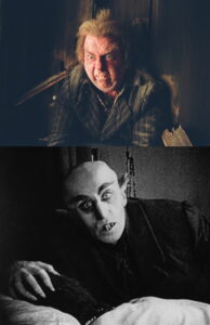 [18] Or a character inside the setting who is equally conflicted; e.g., Snape (and similar characters, above). Believe it or not, I don't hate Snape the character until Rowling tries to redeem him; i.e., in ways that feel forced. He's already the beaky-nosed, dark-haired foreigner with pale skin—meaning of vague "Eastern" descent seen in early Neo-Gothic novels that simultaneously romanticize and mistrust anything outside/east of England (e.g., Radcliffe's Italian, 1797). It's antisemitic, though less so than Peter Pettigrew aka "Wormtail" (a nod, below, to Grima Wormtongue, another Tolkien allusion)—a visibly rat-like man (echoing Max Shreck's Orlock from F. W. Murnau's Nosferatu, 1922) who betrays his friends for the enemy and, well, takes on the qualities of rats seen in antisemitic narratives: blood libel revived by the Nazis, then displaced by Tolkien and others into Orientalist spheres after WW2/the formation of the Israeli ethnostate (re: "React #32: Orientalism and the Gothic").