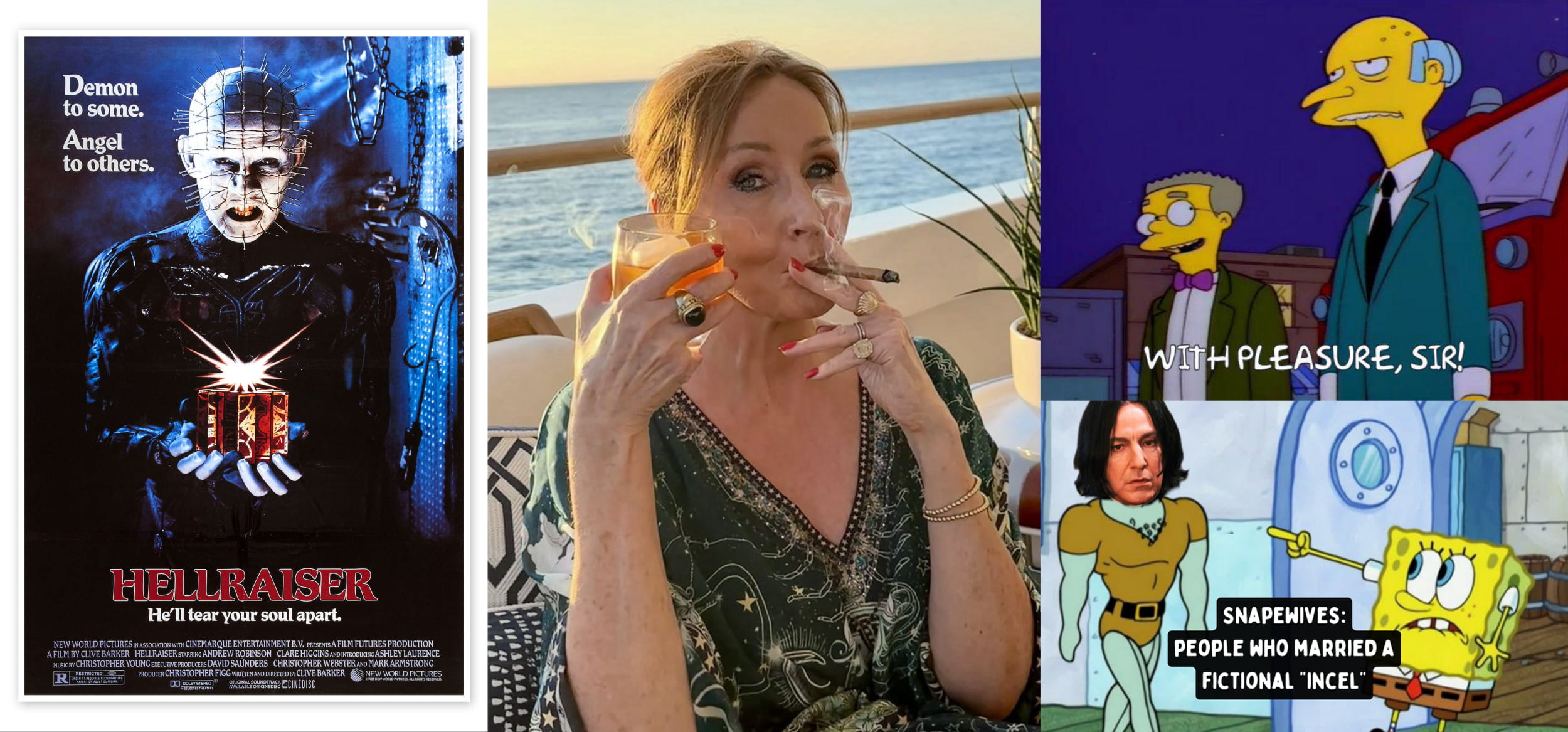 This essay pulls a Gothic classic: returning to home as dead, or killing one's darlings by facing a dark side to them without rose-tinted glasses. In my case, here, that means Harry Potter as a book series; i.e., which I read as a little girl in the '90s, specifically in middle school. The paradox of exposure is the value "our first love" gives while being bad for us; e.g., a queer person's exposure to The Wizard of Oz (1939), Rocky Horror (1975) and, yes, Rowling's books (or Tolkien's, etc). The idea, here, as we proceed, is killing our darlings in ways that reverse abjection, ergo state predation and Capitalist Realism: it being canonically easier to imagine a world that doesn't exist at all versus an end to Harry Potter as yet-another-simulacrum of Plato's allegory of the cave. We return to these things as dead (comparable to Zombie Simpsons, 2012) and parody them however we wish (not sabotage but transformation, riling up our enemies who abject us through franchises they police):