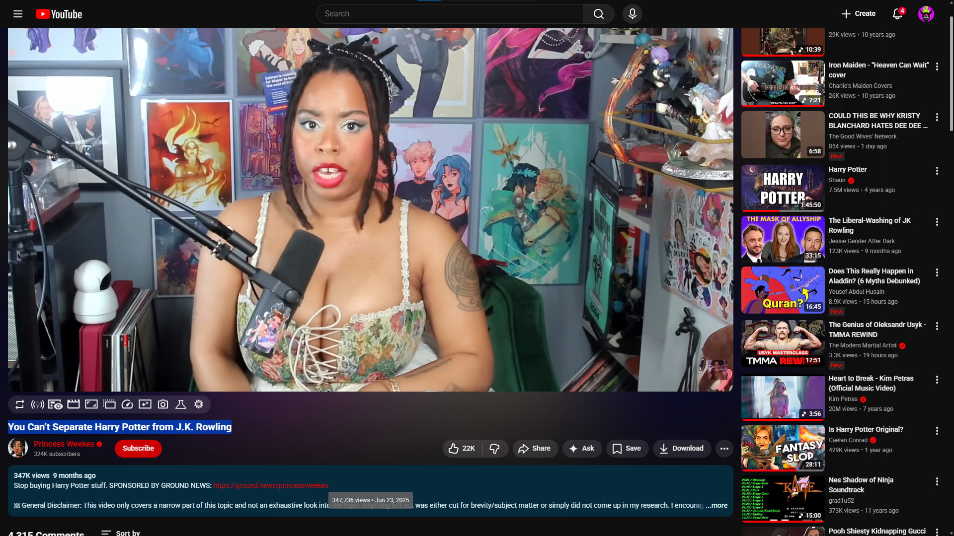 (source YouTube comments: "Essay #10: Dead on Arrival; or, J.K. Rowling's Autopsy (and Those Who Shill Her)," 2026)